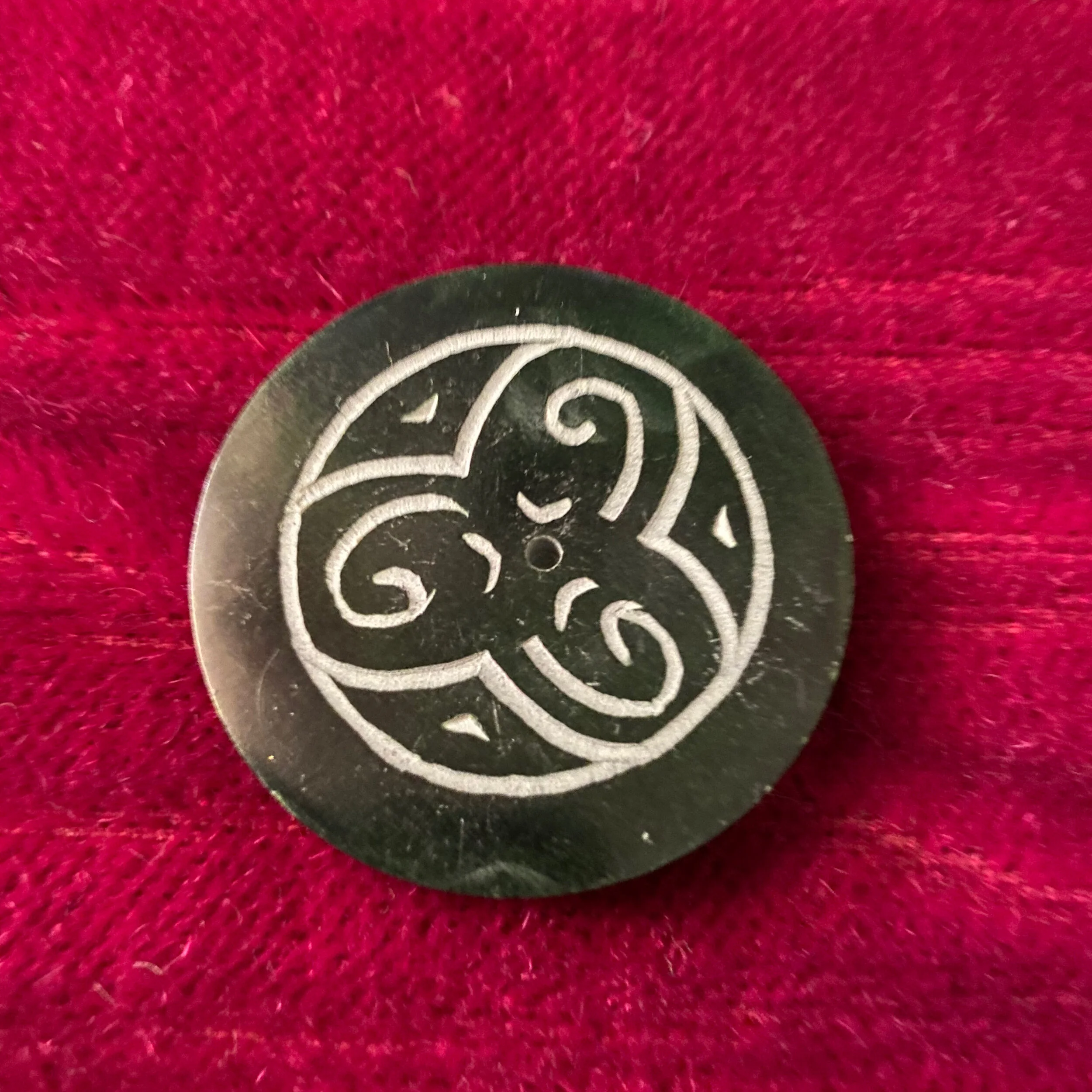 Attractive and vibrantly coloured hand carved and hand painted incense holder. Made from soapstone. Features Om design